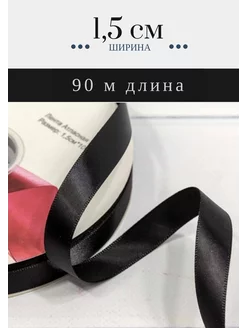 Лента атласная 1,5 см черная атлас 15 мм