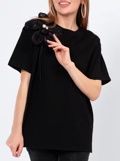 Футболка оверсайз с брошью цветком с бантом нарядная корея