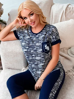 Хлопковая пижама с бриджами и футболкой костюм домашний