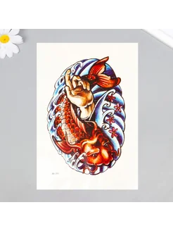 Цветная переводная татуировка "Красный сом", 26х14 см
