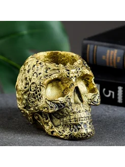 Кашпо органайзер "Череп" в состаренном золоте 11х7 см