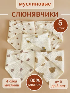Слюнявчик для новорожденных муслиновый набор 5 шт