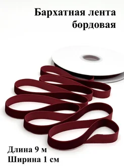 Бархатная лента для рукоделия бордовая тесьма упаковочная
