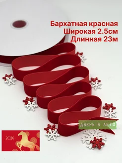 Тесьма бархатная декоративная лента для подарка красная