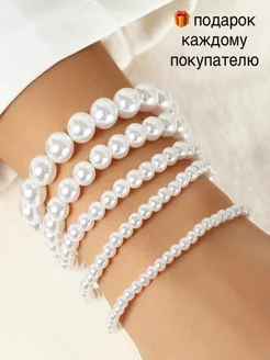 набор браслетов на руку 5 штук из иссуственного жемчуга