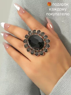 Кольцо крупное яркое со вставками, кольцо перстень большое