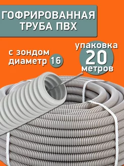 Труба гофрированная ПВХ 16 с протяжкой серая 20 метров