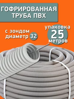 Труба гофрированная ПВХ 32 с протяжкой серая 25 метров
