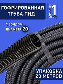 Труба гофрированная ПНД 20 с протяжкой черная 20 метров