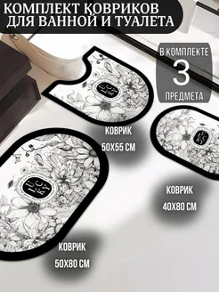Набор безворсовых ковриков для ванной комнаты и туалета 3 шт