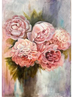 Большая интерьерная картина маслом Букет Пионы ручной работы