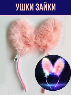 ободок ушки зайца зайчика Аниме розовый новогодний свет