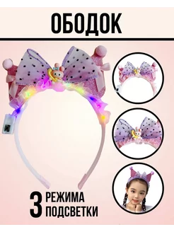 ободок бант для волос Аниме розовый новогодний светящийся