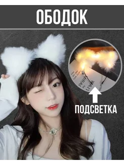 ободок ушки зайца зайчика Аниме белый новогодний светящийся