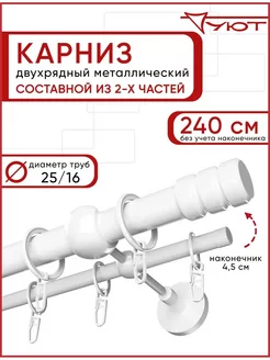 Карниз для штор настенный двухрядный Ост 240 см металл