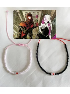 Парные браслеты на нити человек паук и гвэн с регулировкой