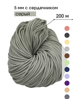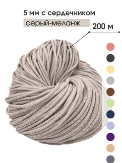Полиэфирный шнур 200 м 5 мм с сердечником Серый_меланж