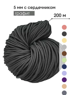 Полиэфирный шнур 200 м 5 мм с сердечником Графитный