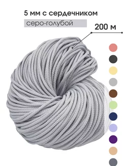 Полиэфирный шнур 200 м 5 мм с сердечником Серо-голубой2