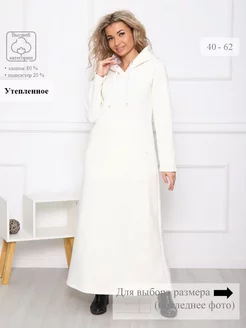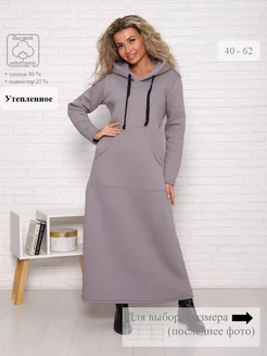 Платье теплое длинное зимнее с начесом и капюшоном оверсайз