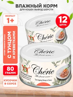 Корм Cherie для кошек вывод шерсти тунец креветки 80 г 12 шт