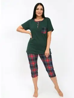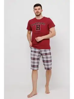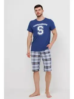 Пижама мужская с шортами и футболкой с надписями хлопок