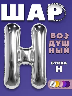 Воздушный шар серебристого цвета, буква Н, 90 см