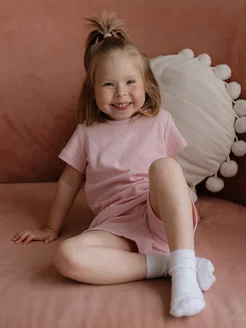 Пижама детская с футболкой и шортами в рубчик