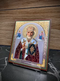 Икона "Святой Николай Чудотворец в митре" для дома 11х13см
