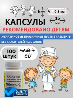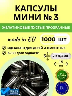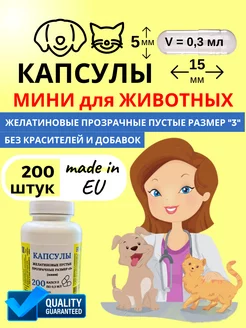 Капсулы пустые для животных желатиновые 200 шт размер 3