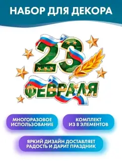 Плакат на 23 февраля, бумажные украшения, 8 элементов