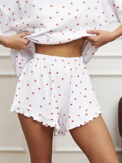 Пижама шорты с футболкой принт сердечки