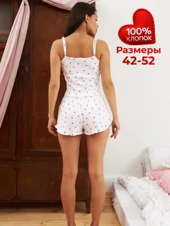 Пижама короткая с шортами и топом на бретельках с сердечками