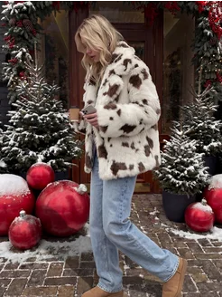 Шуба искусственная короткая пушистая коровий принт