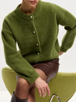 Кардиган пушистый укороченный на пуговицах