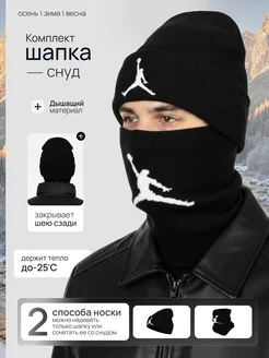 Шапка бини со снудом зимняя,осенняя с отворотом