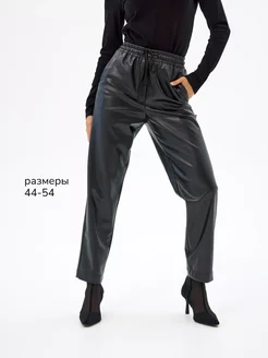 Брюки кожаные утепленные бананы на резинке