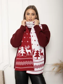 Свитер удлиненный Новогодний с оленями без горла вязаный