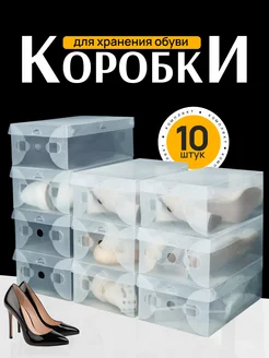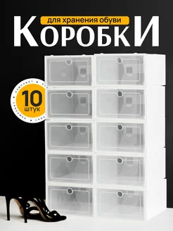 Коробки для хранения обуви и вещей прозрачные 10 штук