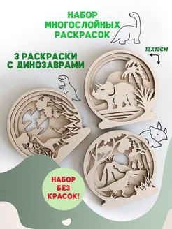 Набор для творчества ДИНО Деревянная 3д раскраска