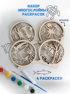 Набор для творчества ОКЕАН деревянная 3Д-раскраска
