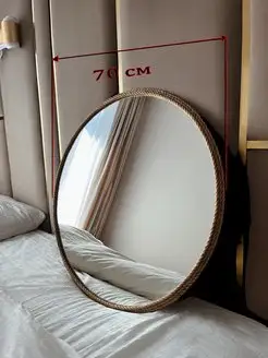 Круглое зеркало в раме из джута, диаметр 70 см коричневое