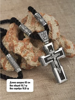 Крестик серебро мужской на шнурке православный