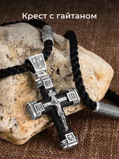 Крестик серебро мужской на гайтане православный