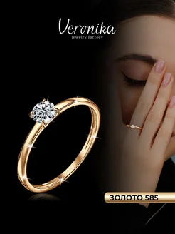 Кольцо золото 585 пробы женское помолвочное с фианитом