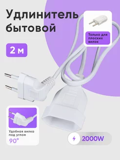 Удлинитель 2 м электрический бытовой шнур белый на 1 вилку