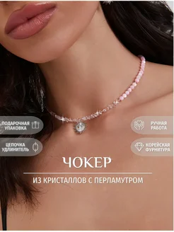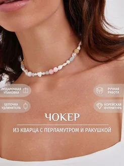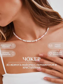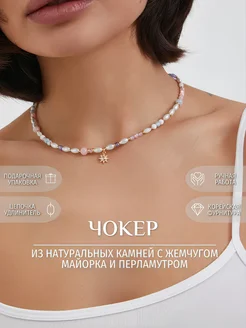 Чокер из натуральных камней на шею с жемчугом и перламутром