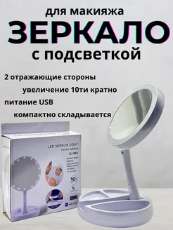Двухстороннее зеркало с увеличением в 10 с подсветкой