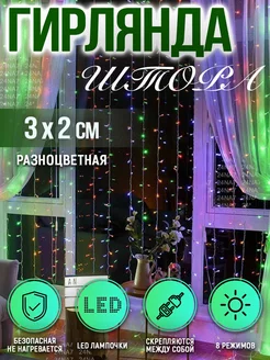 Гирлянда штора 3 на 2 метра новогодняя разноцветное