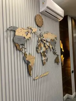 карта мира деревянная 140 80 см цвет орех и серый, подробная